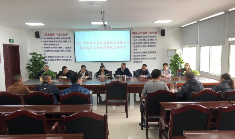 ? ? 10月14日,遂寧興業(yè)集團直屬企業(yè)市順安駕培公司召開駕考部員工崗位調(diào)整現(xiàn)場評價會,以書面陳述、現(xiàn)場問答、評審打分等形式組織7名駕考部員工進行崗位競聘。