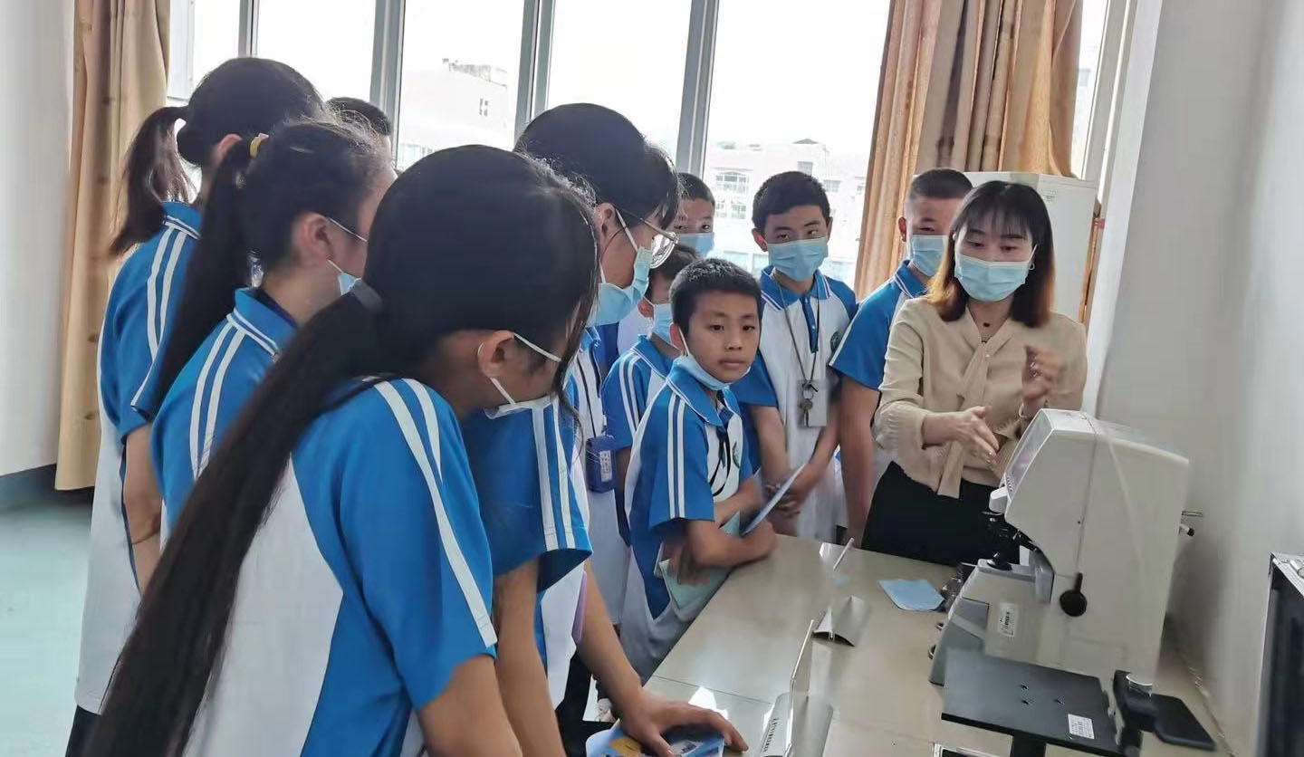? ? “健康計(jì)量走進(jìn)學(xué)校”活動現(xiàn)場,公司工作人員用專業(yè)的計(jì)量儀器設(shè)備為學(xué)生們檢測眼鏡質(zhì)量,講解愛眼護(hù)眼相關(guān)知識。